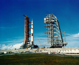 The Apollo 11 rocket completes its final checks before take-off. Images courtesy of the NASA History Office and the NASA JSC Media Services Center.
