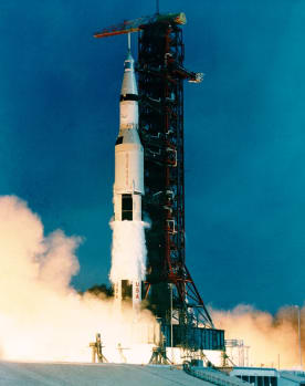 The Apollo 11 rocket takes off. Images courtesy of the NASA History Office and the NASA JSC Media Services Center.