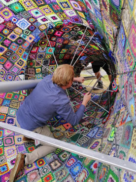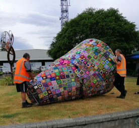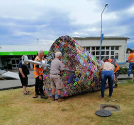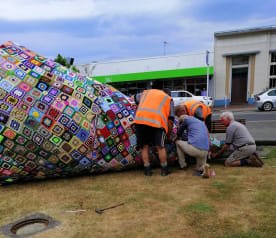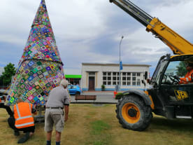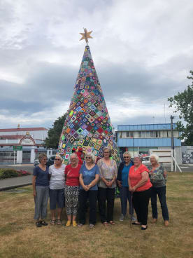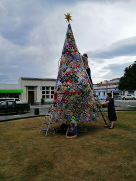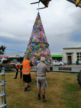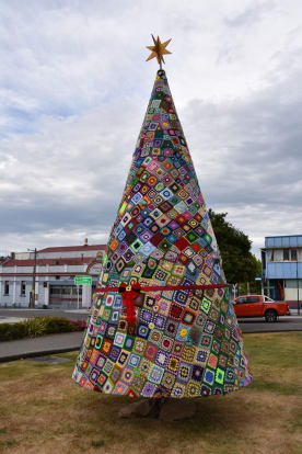 A special five-meter Christmas tree made of granny squares was made by the Waipukurau Arts and Crafts group, and erected in Waipukurau.