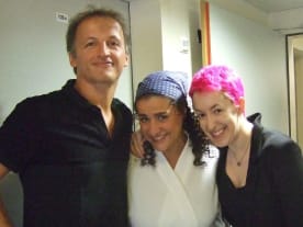 Backstage at the Salzburg Festival with conductor of orchestra, Ensemble Matheus) Jean-Christophe Spinosi and opera singer, Cecilia Bartoli.