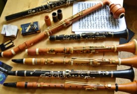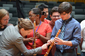 Marie giving a lecture-demonstration on historical clarinets at Northwestern University (Evanston, IL, USA)