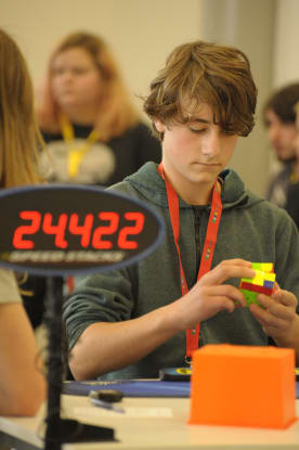 The overall winner of the 3 x 3 speed cubing competition, the reigning National Champ, Alex Asbery