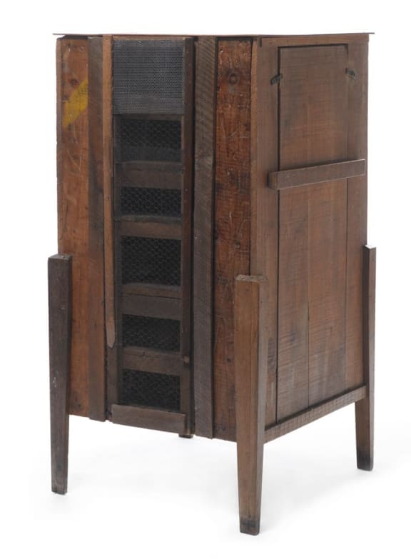This is the Depression era food safe I also refer to made out of old boxes and salvaged/reused materials. Found in Sandringham, Auckland.