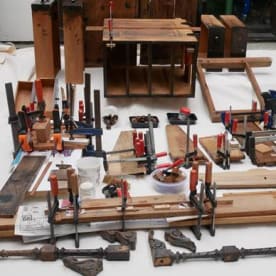 This is the Davenport desk in pieces at the beginning of restoration in March 2020