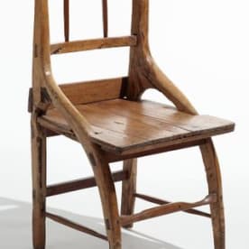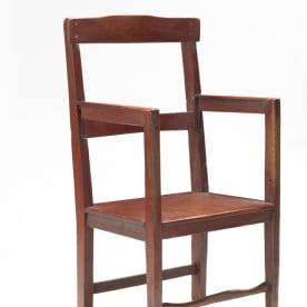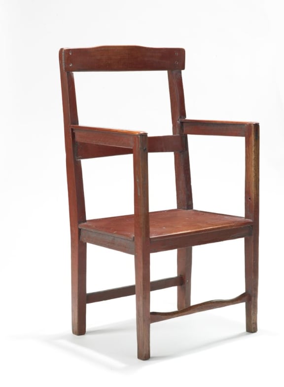 This generic William IV-style chair came from South Canterbury and is an example of a settler-made armchair using scrap materials.