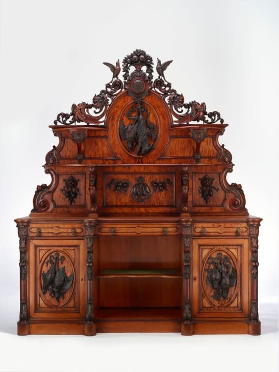 After six weeks during the lockdown period, the Christchurch-made kauri, rewarewa, totara and cedar sideboard has been returned to its original 1870 appearance