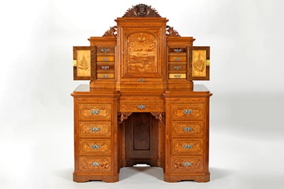 This is the Baden-Powell Desk made by William Seuffert (Auckland, completed after 3 years in 1903) now in the Auckland Museum.