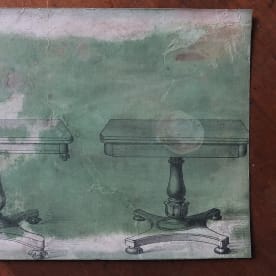 These patterns were found in the lining of a small inlaid box I restored about 20 years ago. The box was made by William Seuffert (son of Anton who made the Hooker Secretaire above) in about 1900 but the patterns came from Thomas King's (1835) Cabinet Maker's Sketch Book.