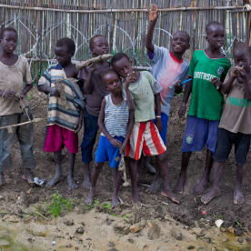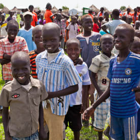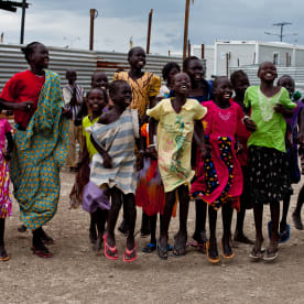 At a World Vision Child Friendly Space in the village of Kodok, Upper Nile, children play, sing and dance. Here they have a chance to restart their education and receive psychosocial support for the terrible violence they have witnessed. An estimated one million children are believed to be in psychosocial distress.