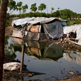 More than 40,000 people live in the POC site on the UN base. Conditions are horrific and those living here face incredible hardship. The residents live in makeshift shelters in areas that quickly becomes a swamp after rain. Overcrowding, mud and poor sanitation spreads disease quickly. Children are the most vulnerable.