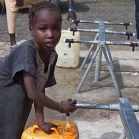 Last year in the village of Kodok, Upper Nile, there was an outbreak of cholera last year because of a water shortage. World Vision has built an emergency water system that turns the filthy water from the Nile into clean drinking water.