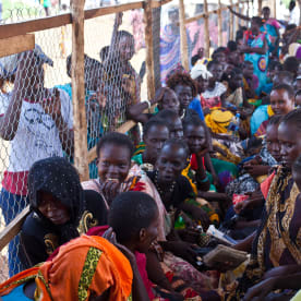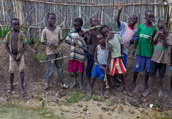 Groups of children wait outside the food distribution site at the Juba Protection of Civilian site. Children are the most vulnerable in this crisis that is threatening a generation of South Sudan.