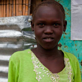 This girl is part of an extended family of more than 35 living in terrible conditions at the Juba POC. The family was crowded together in a group of tents pieced together with rusted sheets of corrugated iron over an earth floor. There is not enough food to feed the large family, and the children have become sick many times in the camp full of disease.