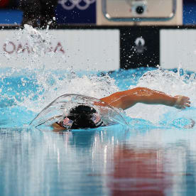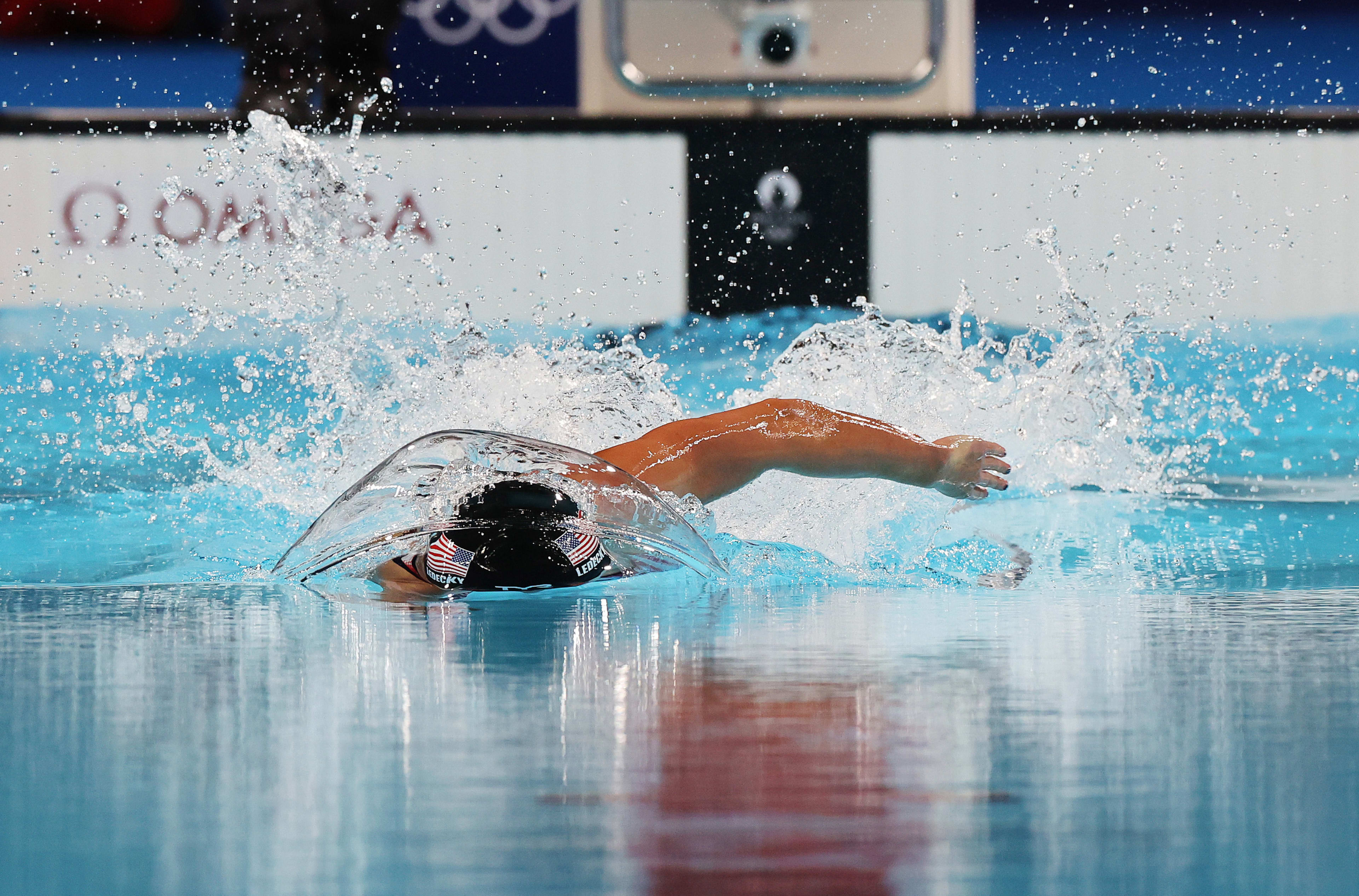 Katie Ledecky of the United States during the Women's 800m Freestyle Final on day eight of the Olympic Games Paris 2024 at Paris La Defense Arena on August 03, 2024 in Nanterre, France. Photograph by David Levene 3/8/24 (PHOTO: David Levene)
