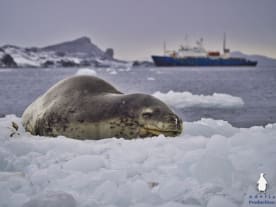 Leopard Seal and the Shokalskiy, Cape Royds, Antarctica.