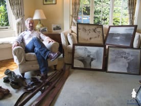 Lloyd Spencer Davis sitting in Levick’s chair in his house in Budleigh Salterton.