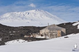 Borchgrevink’s Hut at Cape Adare, Antarctica, site of the world’s largest Adelie Penguin colony.
