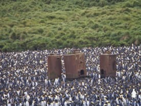 Joseph Hatch’s discarded digesters, King Penguin colony, Macquarie Island.