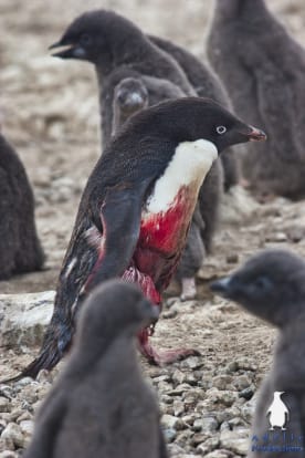 An Adelie Penguin worse for wear after an encounter with a Leopard Seal.