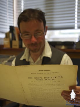 Douglas Russell with the unpublished manuscript by Murray Levick, which he discovered.