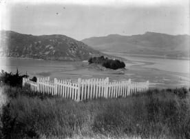 The grave of Ivon Skelton. Skelton died on 20 October 1923, four years after he had been sent to Quail Island. His grave overlooks King Billy Island and the tidal channel on the western side of Quail Island – the path to freedom taken by George Phillips in 1925. Photograph by W.A. Taylor, Canterbury Museum, W.A. Taylor Collection, 1968.213.123
