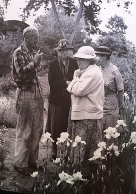 Cedric Morris and visitors in his garden, Benton End, Suffolk.