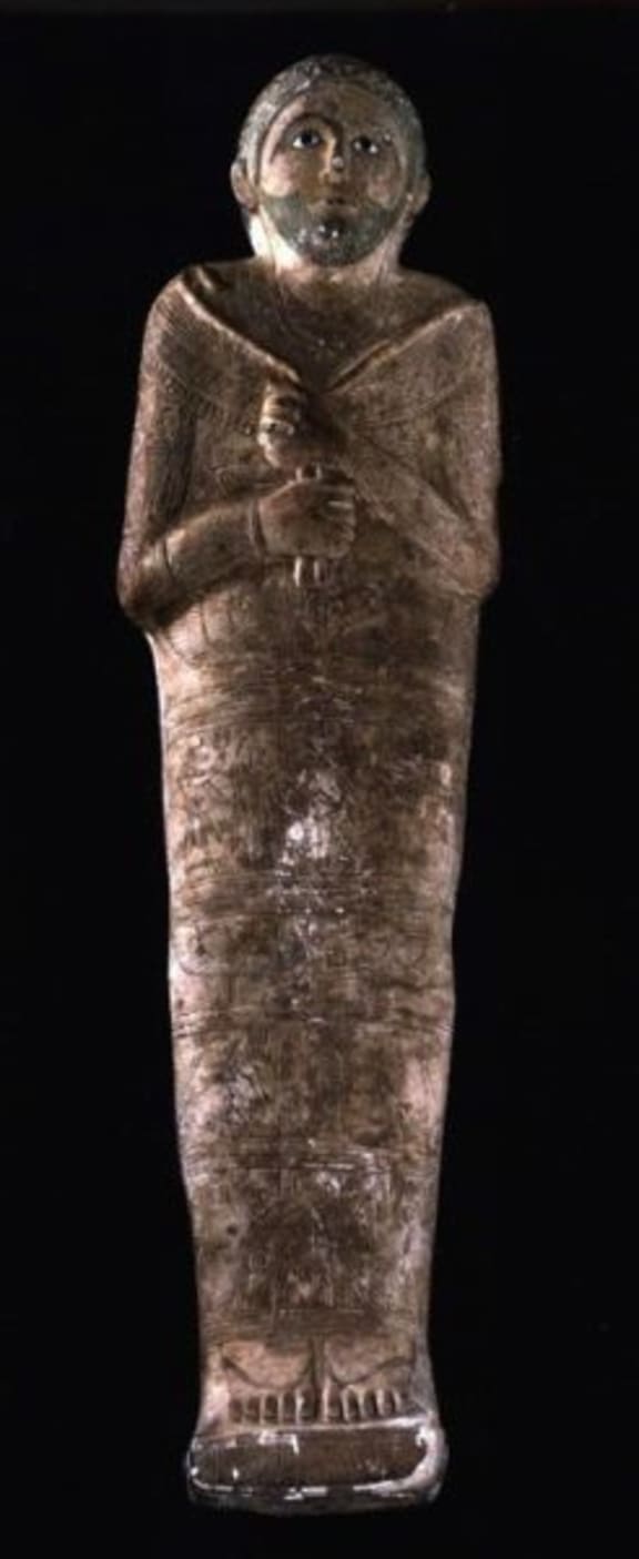 Mummy and coffin of Pausiris Egypt, Ptolemaic to Roman Period, 100 BCE–CE 100, Unknown, Human remains encased in stucco plaster with glass eyes, incised and painted decoration.