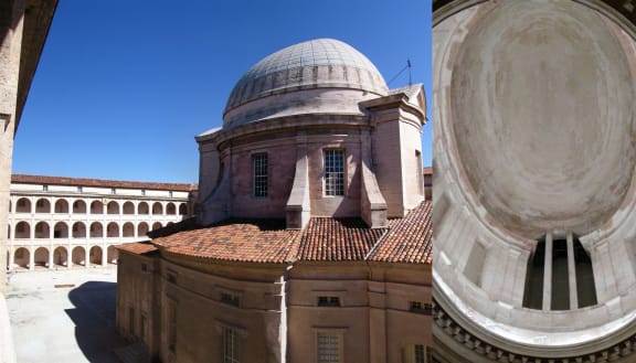 (left) Pierre Puget Vieille Charité Marseilles; (right) Interior of dome Vieille Charité, Marseilles
