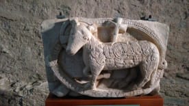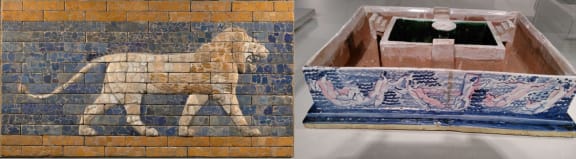 Brick by Brick: Ceramics Applied to Architecture, Museu del Disseny de Barcelona (Barcelona Design Museum) 16 September 2016 to 29 January 2017. (left) A relief with a lion on the Babylonian processional way. Babylon, now Iraqc. 575 BC. Staatliche Museen zu Berlin, Vorderasiatisches Museum. Photo: Olaf M. Teßmer; (right) Raoul Dufy Planter