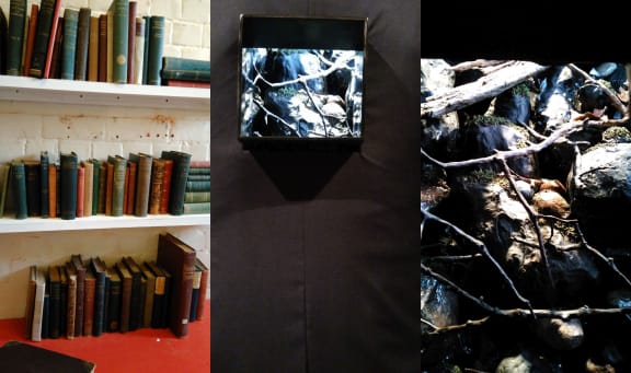(left) Oscar Wilde's books, at Reading Gaol; (centre) Robert Gober Waterfall; (right) Robert Gober Waterfall (detail)