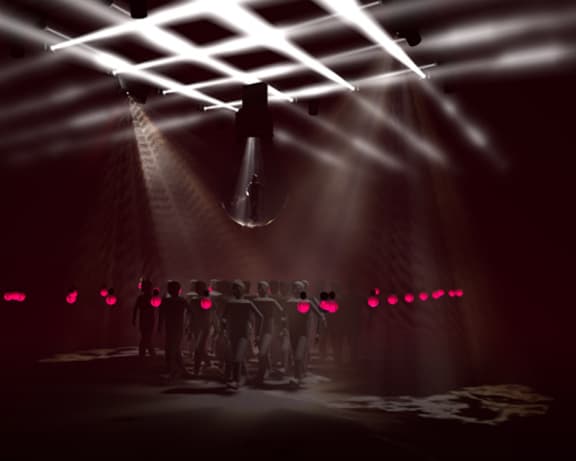 With no spoken narration in Rachel's installation, she tells Lynn Freeman that she wants people to be transported by light and sound.