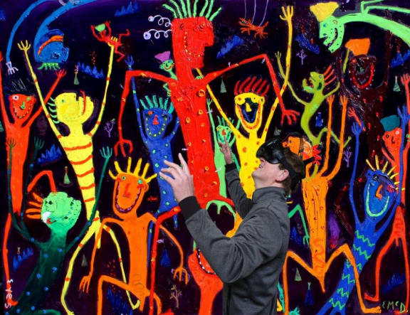 A digital art expert has turned 15 paintings by Dunedin artist Ewan Mcdougall into a virtual reality world where people can move through and interact with his colourful hybrid creatures.