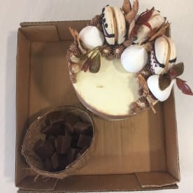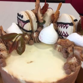 Noqu Viti cake - his signature cake. Dense coconut cake, sandwiched between a rich coconut caramel sauce, cream cheese butter icing, bounty rum syrup, garnished with coconut candy and coconut fudge macarons.