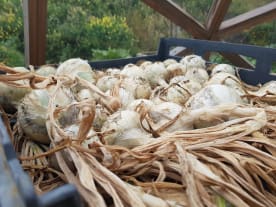 This season onions drying in the Geodesic Biodome