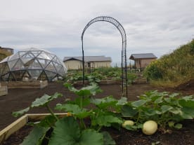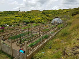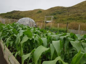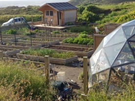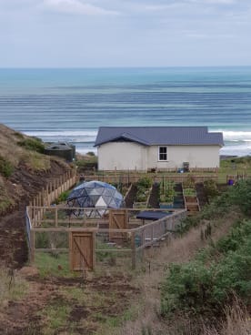 The garden and chicken coop looks great nestled in the valley beside the sea