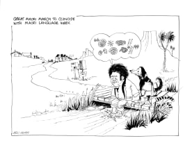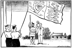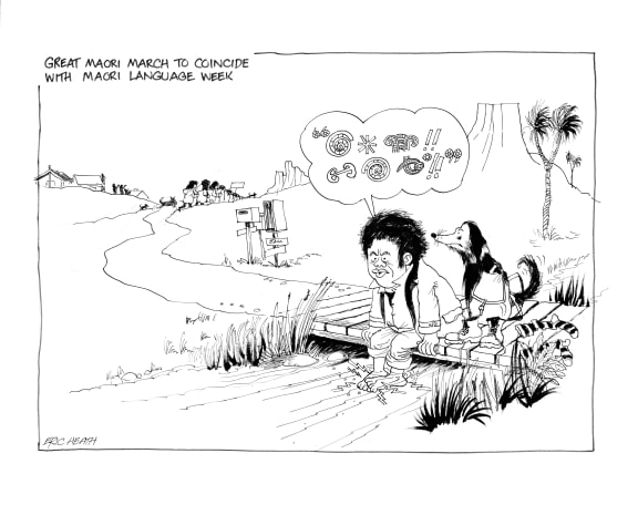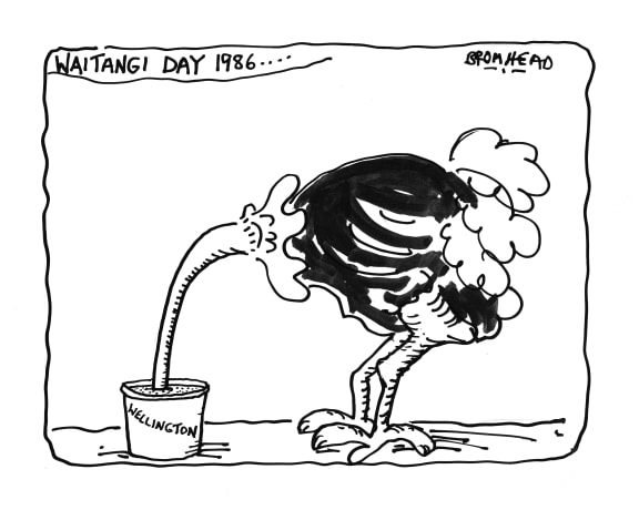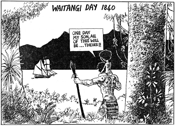 Waitangi Day 1840; Tom Scott: Evening Post; 5 Feb 1988, ATL: H-733-06D