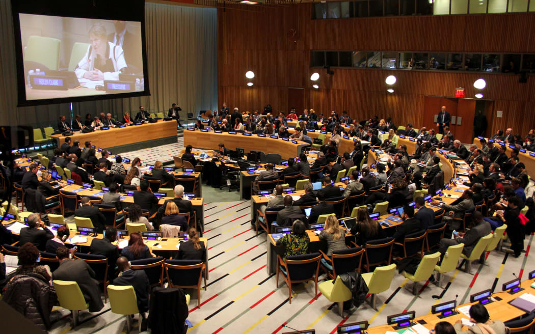Miss Clark answering questions from UN member states Photo: RNZ / Alexander Robertson