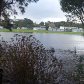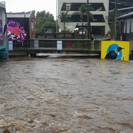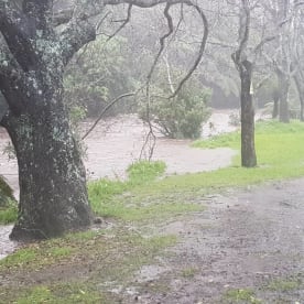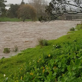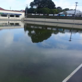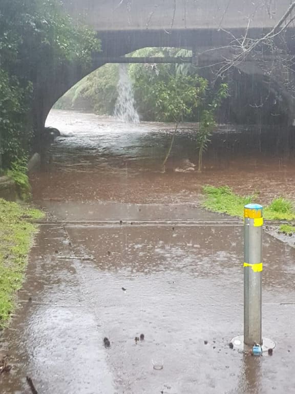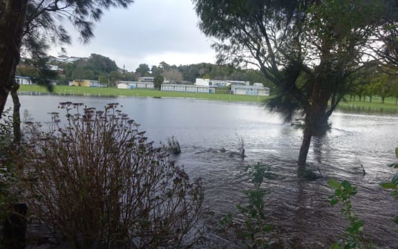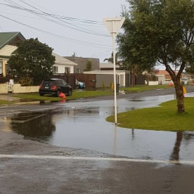 Stormwater and sewage has flooded the Calvert Rd entrance of Devon Intermediate.